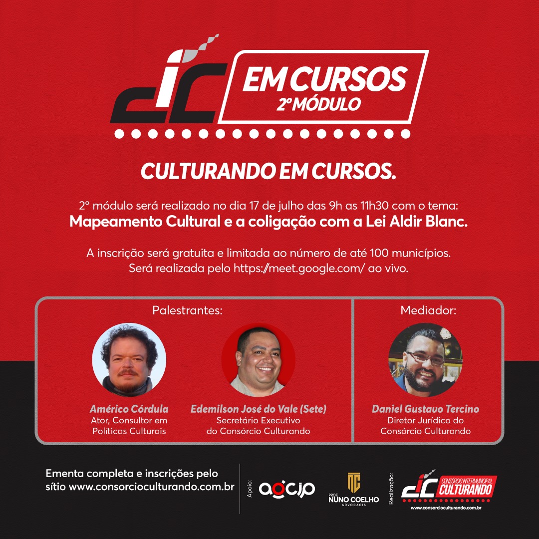 O Consórcio Intermunicipal Culturando em sintonia com a regulamentação dos cursos livres no Brasil, como segue: Lei nº. 9394/96, o Decreto nº. 5.154/04 e a Deliberação CEE 14/97 (Indicação CEE 14/97), inicia uma série de cursos livres relacionados à administração pública.
