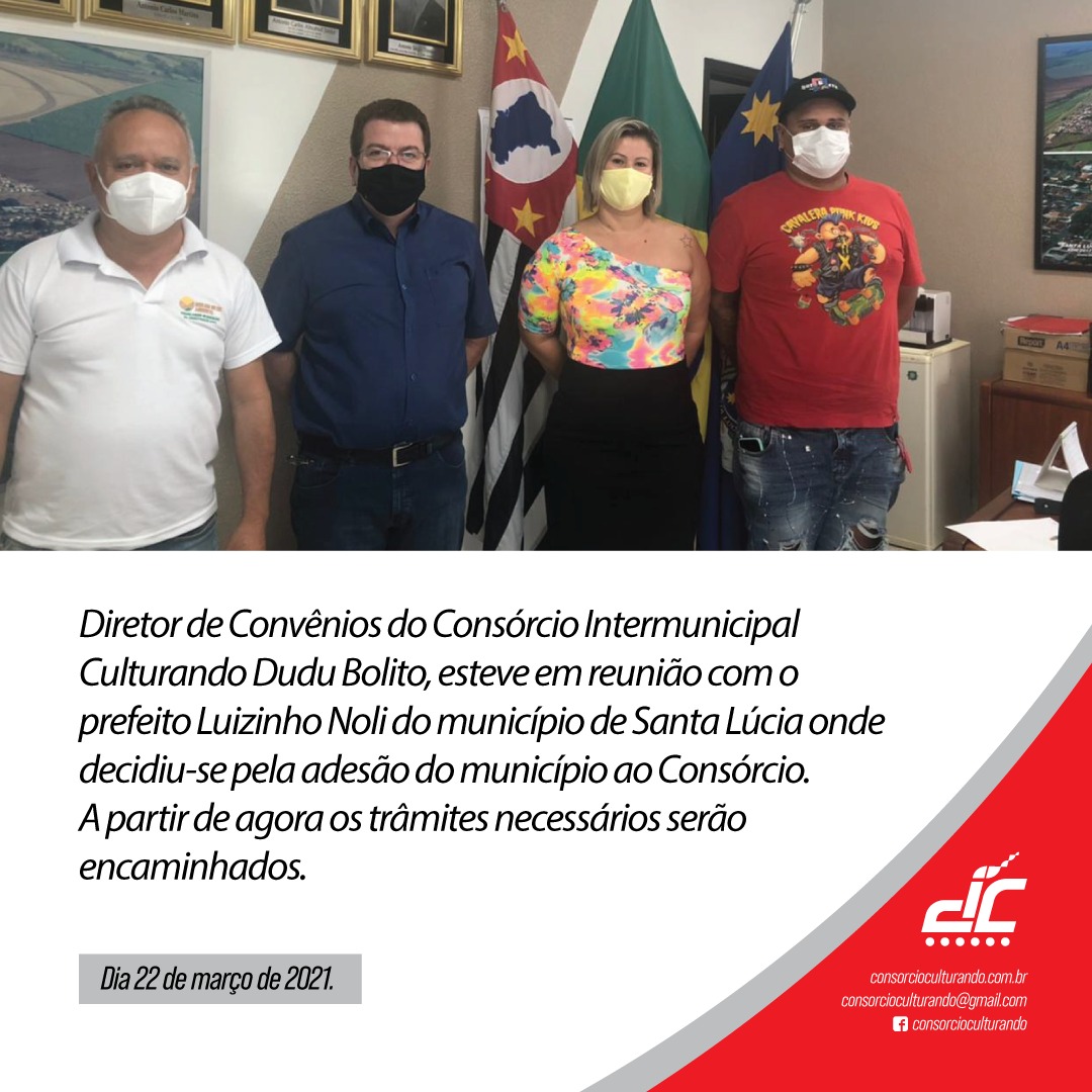 Início » Notícias » Diretor de Convênios do Consórcio Intermunicipal Culturando Dudu Bolito, esteve em reunião com o prefeito Luizinho Noli do município de Santa Lúcia