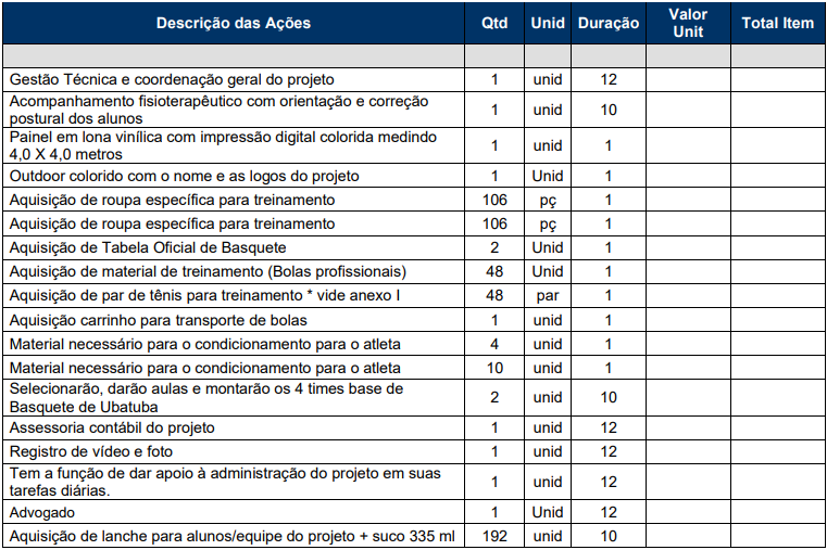DURAÇÃO DO PROJETO: Entre 06 e 15 meses
