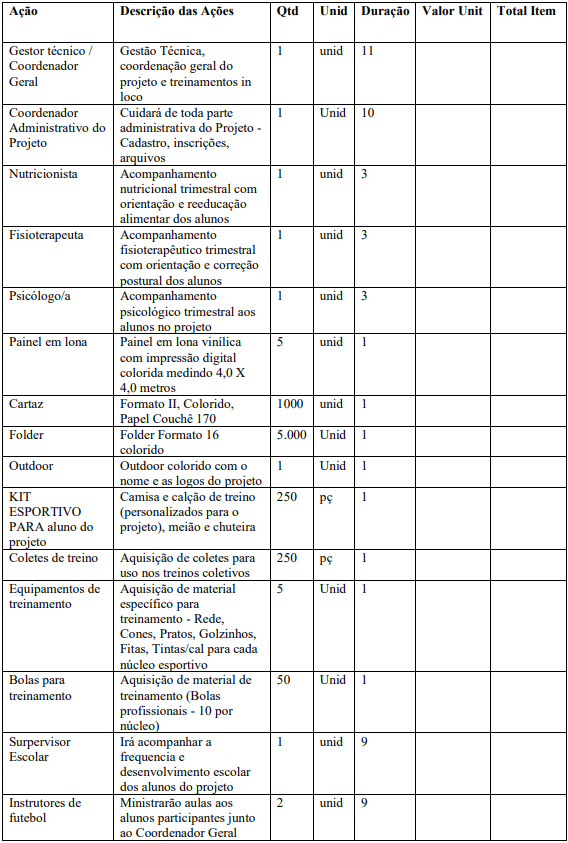 DURAÇÃO DO PROJETO: Entre 06 e 15 meses