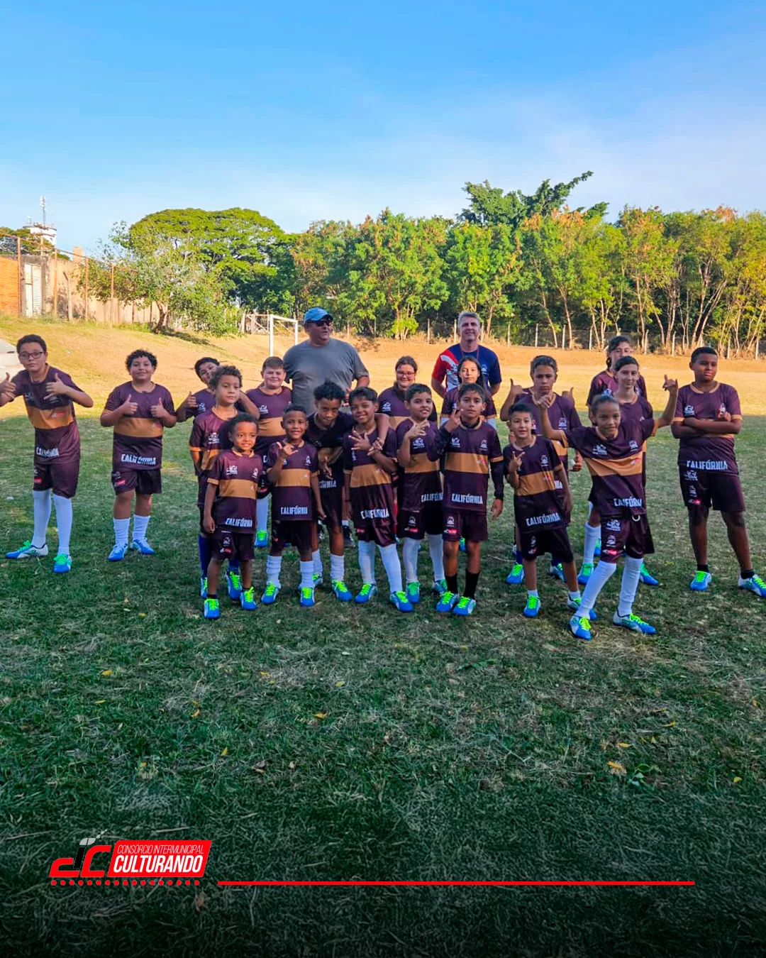 A iniciativa oferece núcleos de treinamento com infraestrutura completa: uniformes, materiais esportivos e uma equipa multidisciplinar para as crianças que participam.