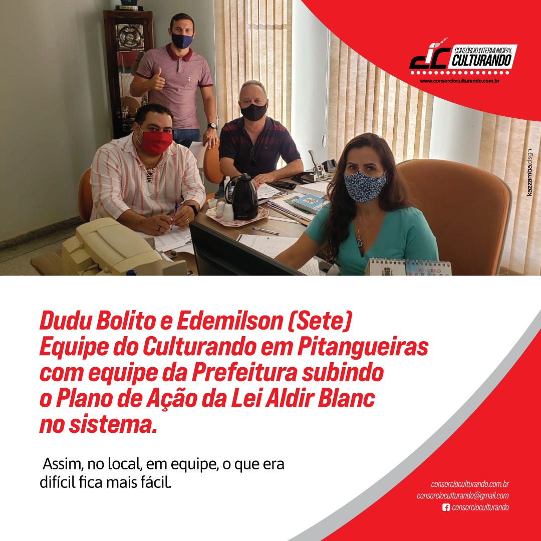 Equipe do Culturando em Pitangueiras com a equipe da Prefeitura subindo o Plano de Ação da Lei Aldir Blanc no sistema