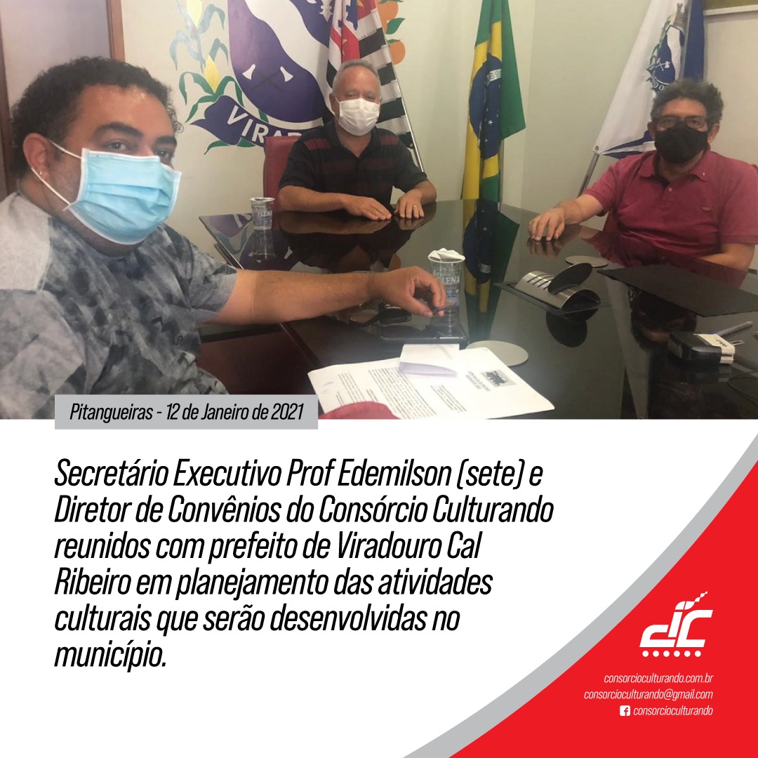 Secretário Executivo Prof Edmilson (Sete) e Diretor de Convênios do Consórcio Culturando reunidos com prefeito de Viradouro